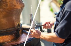 South African potstill brandy is traditionally made from highquality Chenin Blanc and/or Colombar varietals grown specifically for brandy production. These are used to make a base wine, which is then distilled twice in a copper pot still. It has to be copper. And this is where it gets really interesting.